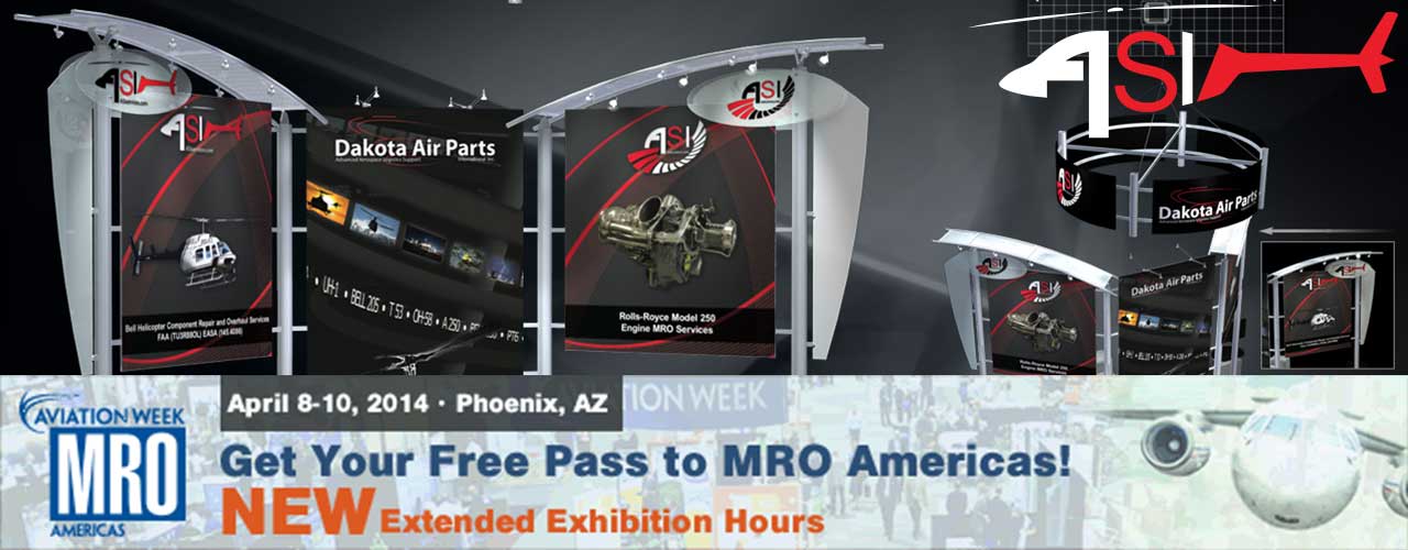PHOENIX, Ariz., (April. 2, 2014) - Air Services Int'l., LLC (ASI) and their strategic partner Dakota Air Parts Intl., Inc. announced that they are co-exhibiting at the MRO Americas Conference in Phoenix, Arizona, April 8 - 10. This is the first time that either ASI or Dakota Air Parts has exhibited at the MRO Americas show.